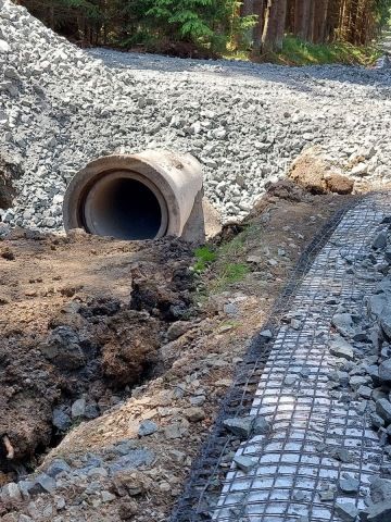 Technické potíže spojené se sníženou únosností podmáčeného podloží byly překonány spoluprací geotechnika a projektanta s technickým dozorem a vlastníkem lesa.